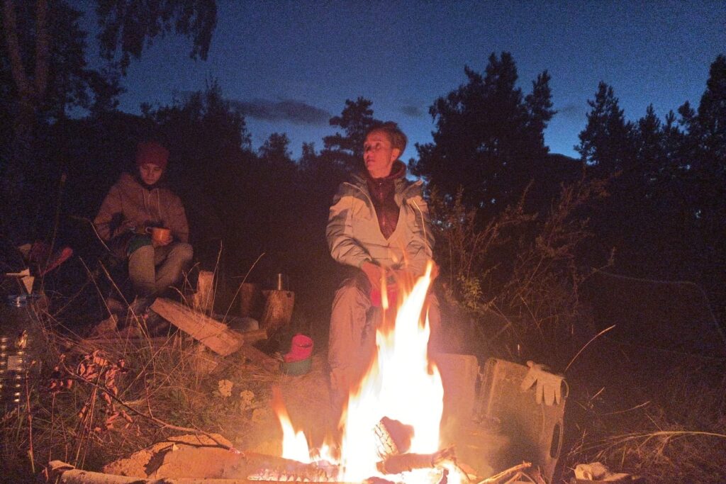 Первым было такое. Установив палаточный лагерь и поужинав, мы смогли немного передохнуть. День был весьма активный, много ходили и много ездили по разным местам. Закат от нас закрывала каменная гряда (она очень живописная, крайне похожа на крепостную стену с башнями). Другие стороны света открыты и виден горизонт.