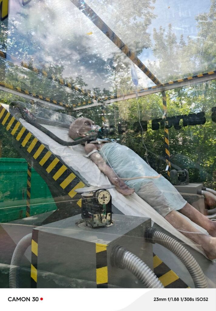 На кузове авто имеется также надпись «Корпорация инопланетян», внутри лежат какие-то журналы или плакаты. К голове гуманоидного существа подведены шланги. Что это такое и зачем — не имеем ни малейшего представления.